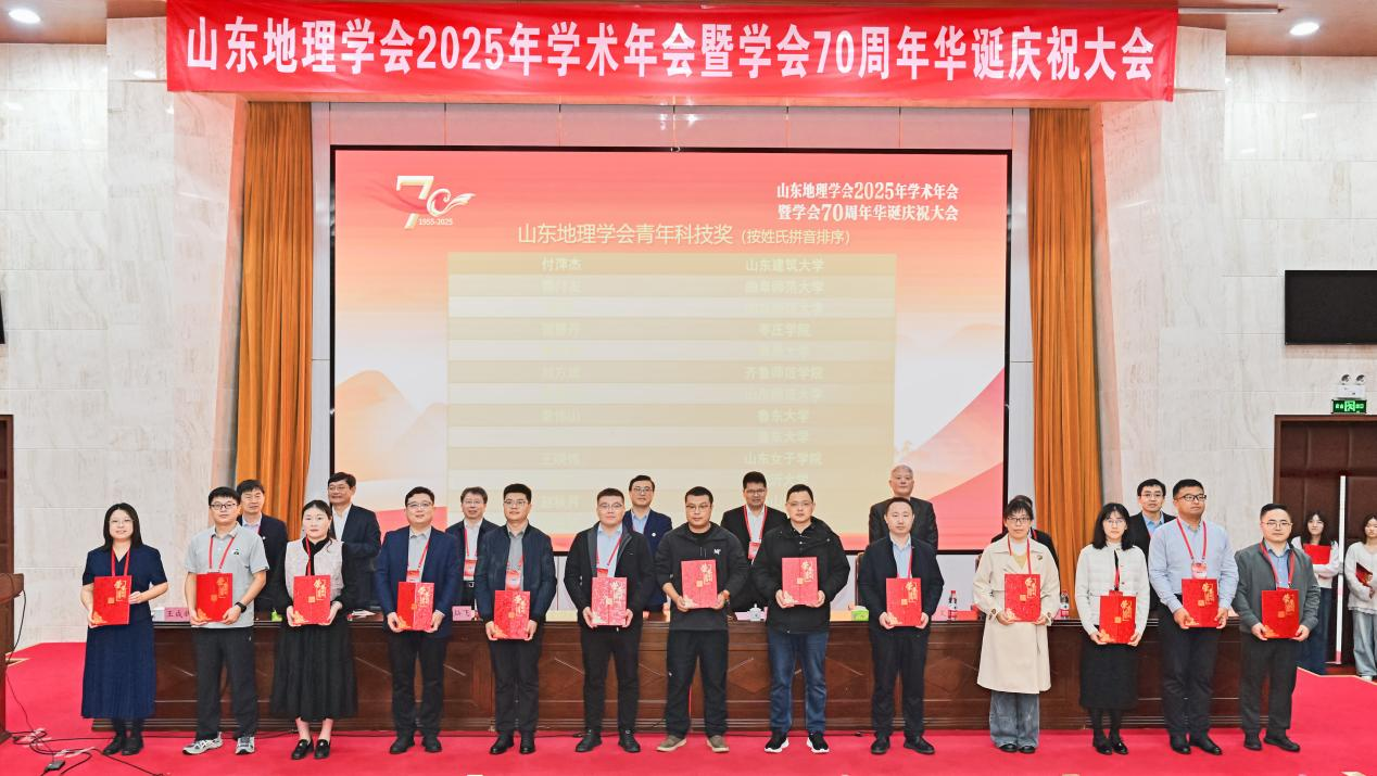 代合治教授获山东地理学会突出贡献奖;郭付友和郭浩获山东地理学会青年科技奖。