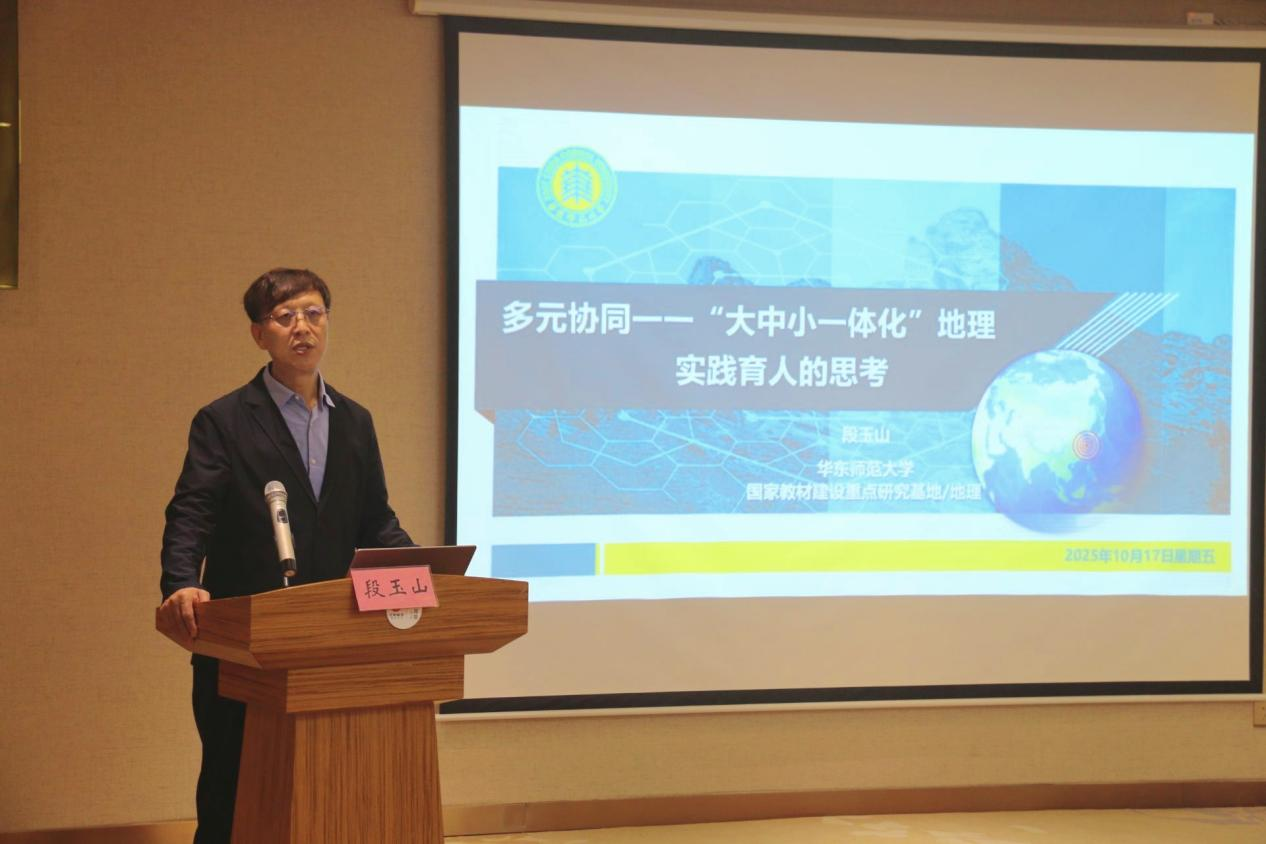 建院40周年,2025年10月17日,我国地理教育领域的权威专家、中小学地理国家教材建设重点研究基地主任、中国教育学会地理教学专业委员会理事长、《地理教学》杂志主编、华东师范大学地理科学学院段玉山教授做客“经纬讲堂·高端论坛”,为学院师生作了题为《多元协同——“大中小一体化”地理实践育人的思考》的精彩学术报告。报告会由番茄社区