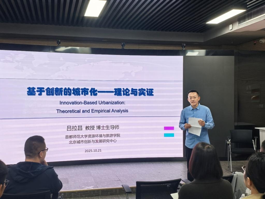 建院40周年,10月23日,首都师范大学北京城市创新与发展研究中心主任、博士生导师吕拉昌教授应邀莅临学院“经纬讲堂·高端讲坛”,为学院师生作了题为《基于创新的城市化:理论与实证》的学术报告。学院相关专业教师及研究生参加了此次报告会。