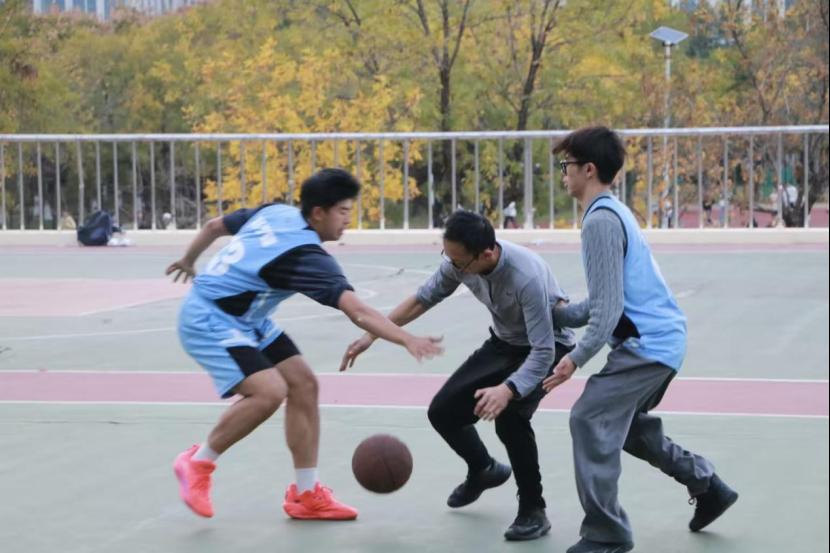 为丰富学生课余文体生活、增强师生间的情感联结,10月23日,我院于西操篮球场举办师生联谊篮球赛。本次活动由团委学生会体育部承办,贺山峰、郭付友、于深洋、王伟、贾子康、陈艳峰、杨雨蒙组成教师代表队,与学生代表队同场竞技,党委书记苏占兵、党委副书记刘伟及工会主席石峰与现场师生共同观看比赛。