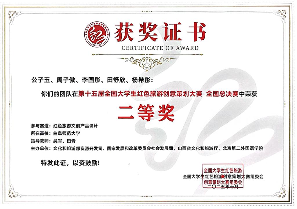 10月18日至22日,第15届全国大学生红色旅游创意策划大赛总决赛在被誉为“八路军的故乡、子弟兵的摇篮”的山西省武乡县圆满落幕。我校地理学子凭借扎实的专业功底与卓越的创新能力,在文创赛道中脱颖而出,以全国第五名的优异成绩斩获二等奖。这是学院第三次跻身全国总决赛,更创下历史最佳战绩,为学校红色教育实践再添浓墨重彩的一笔。