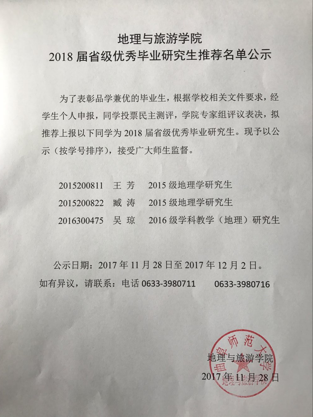 番茄社区 2018届省级优秀毕业研究生推荐名单公示
