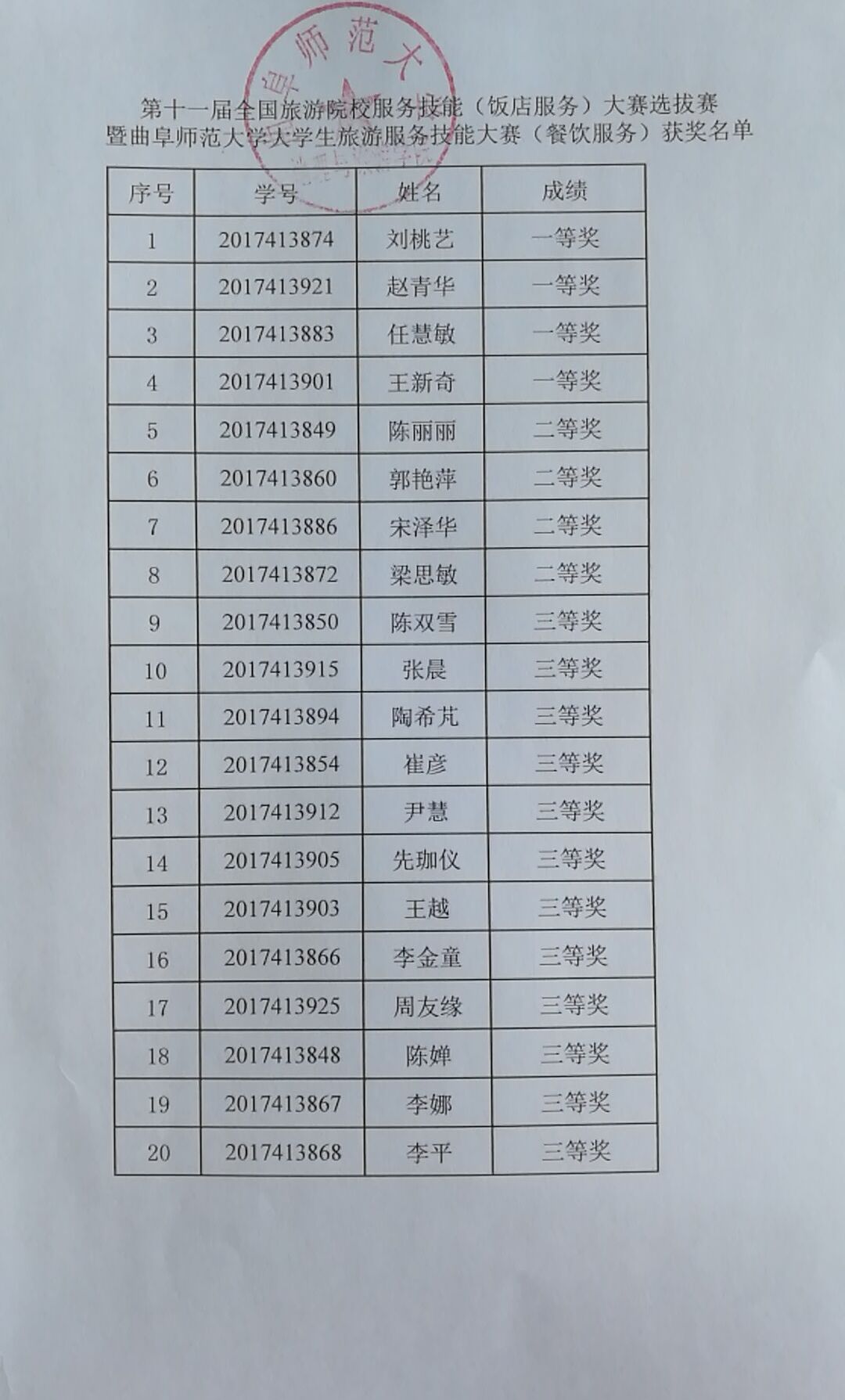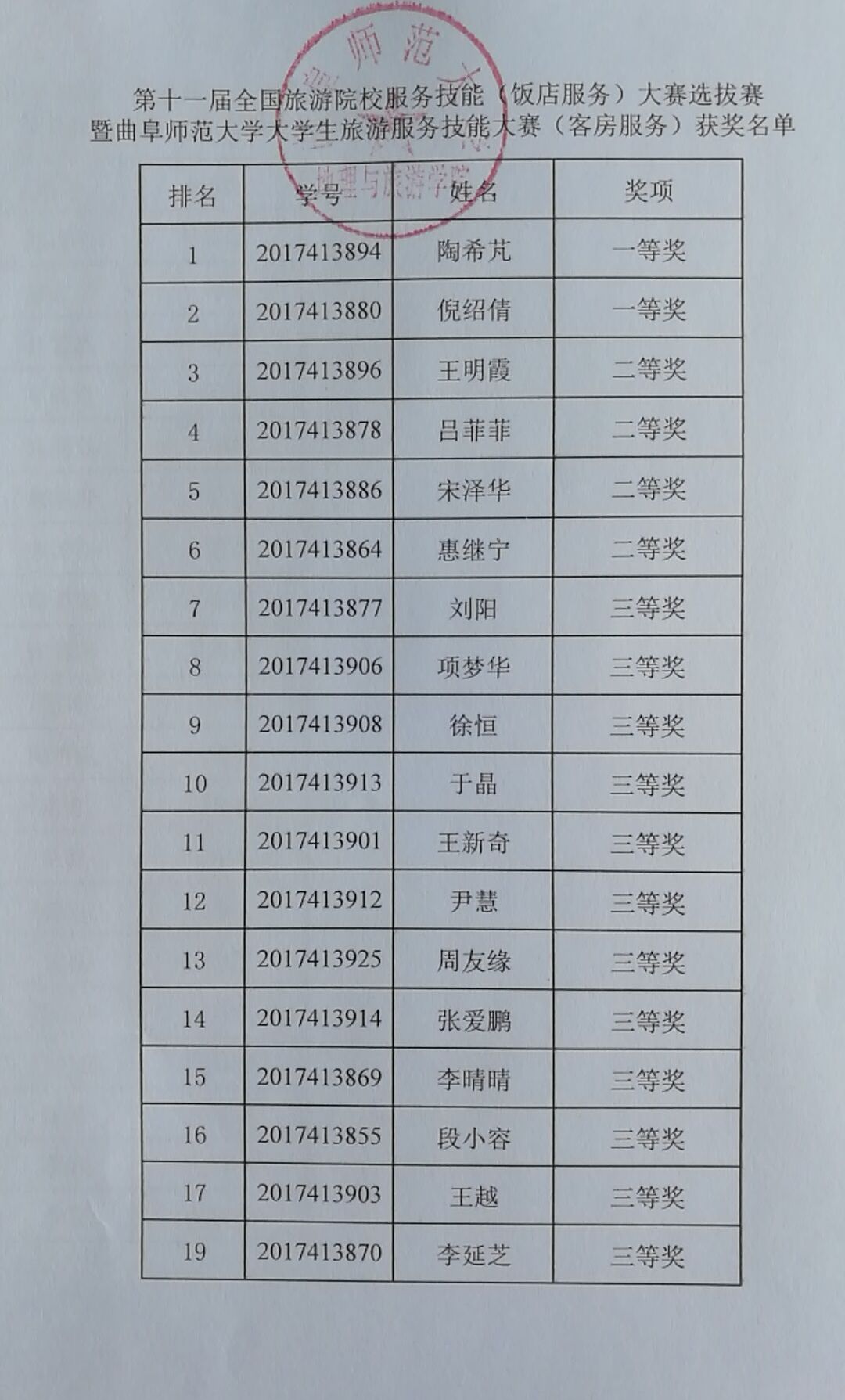 公示:第十一届全国旅游院校服务技能(饭店服务)大赛选拔赛暨番茄社区 大学生旅游服务技能大赛获奖名单